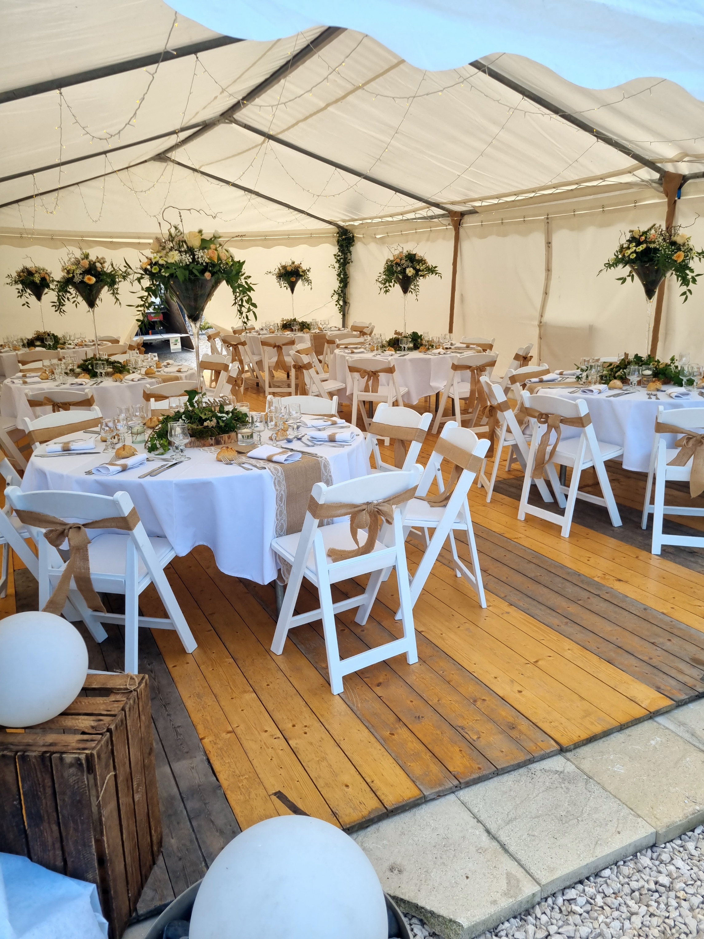Des fleurs magnifiques, des idées par millier et un goût hors pair ! Nous sommes ravis de la décoration que nous avons eue. Les tables et la salle était magnifique. Nous avons fait le choix d’une cérémonie laïque sous chapiteau et celui-ci était décoré avec goût ! N’hésitez pas à faire confiance Aux Fleurs Bressanes pour votre mariage !