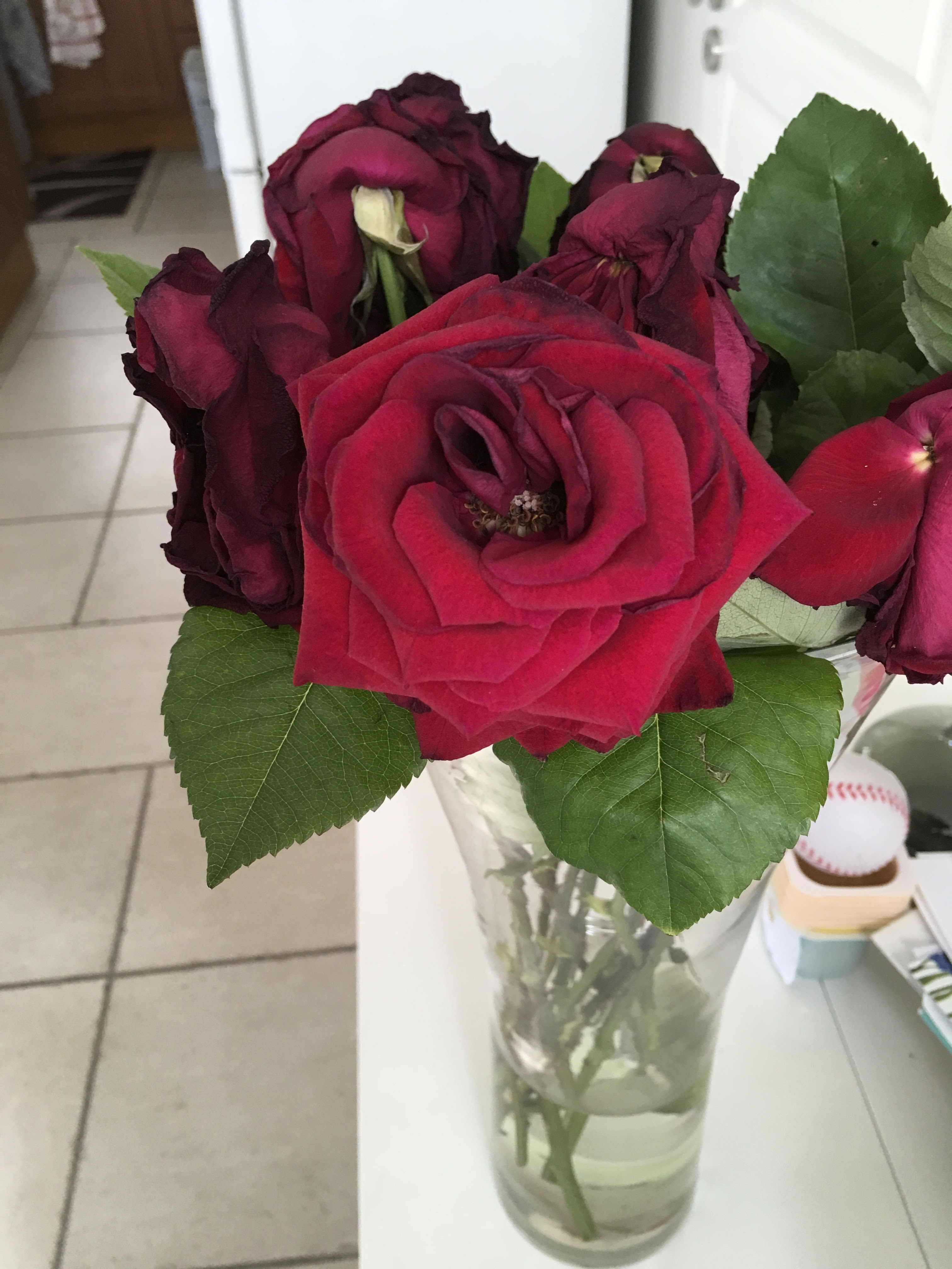 Hortensia et longue rose rouge: tenue 15 jours et a priori encore plus pour l’hortensia