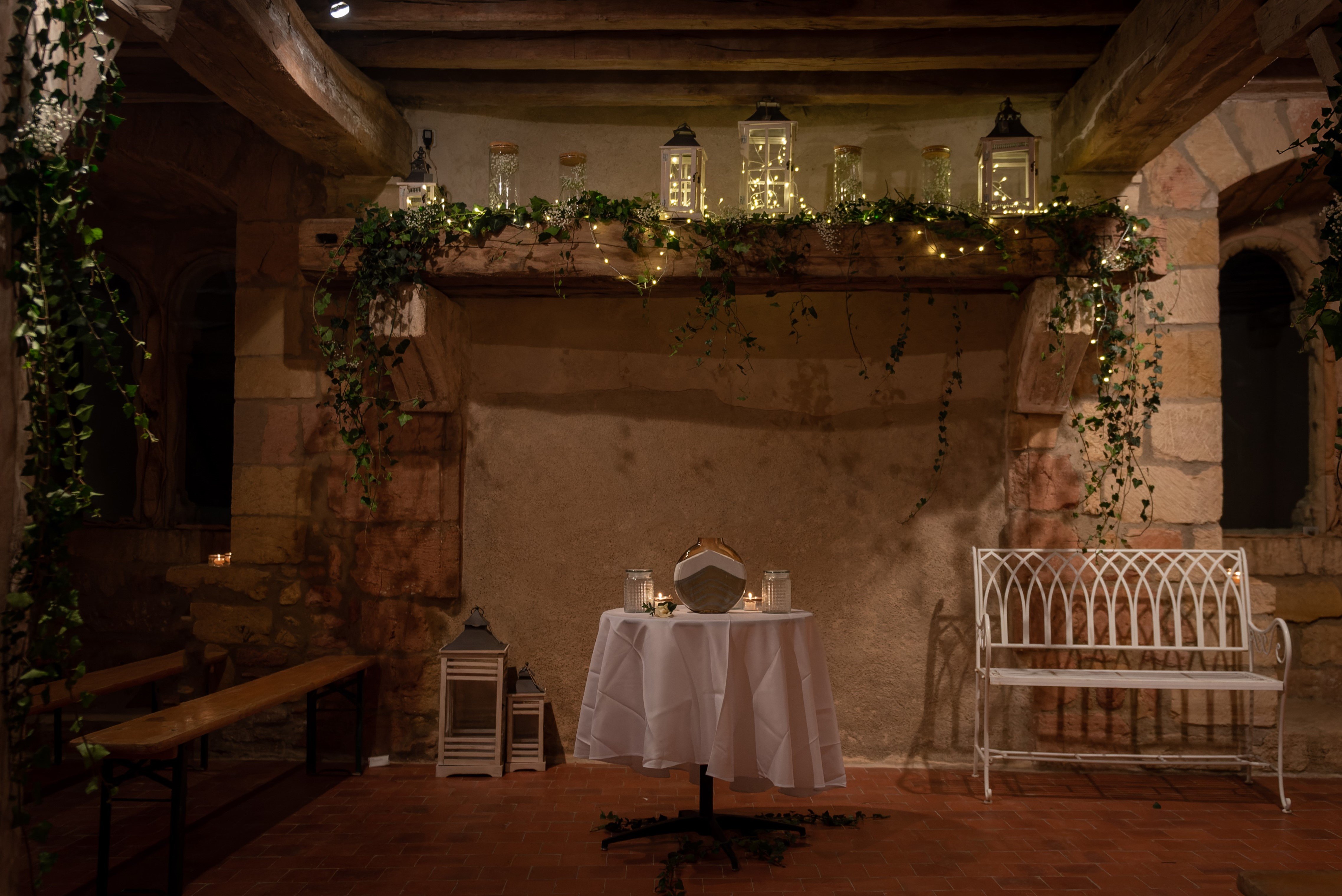 Le jardin enchanté a réalisé la décoration de notre salle de mariage : les poutres, les lustres , l’escalier et le dossier des chaises ont été ornementés de lière, et des couronnes ont été réalisées pour nos centres de table. C’était magnifique. Ils se sont également occupés de mon bouquet, de boutonnières et de fleurs préparées pour être dans les cheveux. Ils ont été très professionnels mais également très sympathiques. Ce fut un plaisir d’avoir organiser notre mariage avec eux !