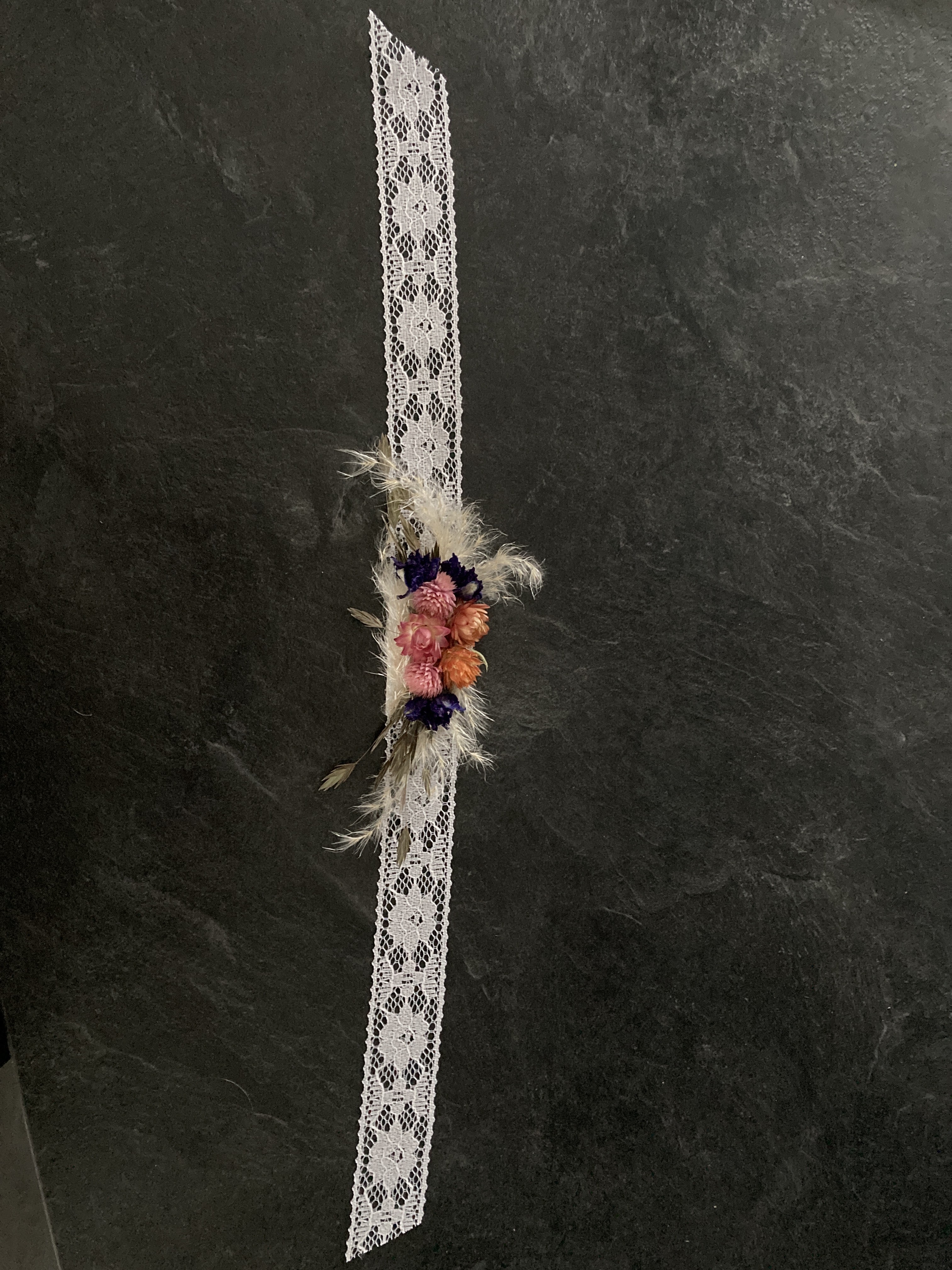J ai fait appel à Stéphanie pour la décoration de notre anniversaire « 25 ans de mariage « sur le thème champêtre. Je lui ai donné carte blanche et très ravie du résultat. Ses compositions sont faites avec des fleurs locales de sa ferme et tiennent dans le temps Stéphanie nous a confectionné une boutonnière pour mon mari ,un bracelet de fleurs séchées pour moi et une pince à Chignon pour ma fille. Vraiment heureuse de lui avoir fait confiance