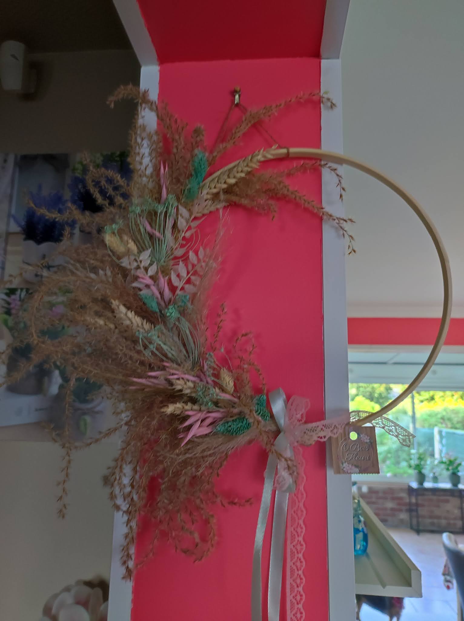 Création d’un cercle en fleurs séchées pour mes parents à noël. C’est grandiose !!!! Il est magnifique , je te remercie pour ta rapidité et ton professionnalisme ainsi que ton talent, je reviendrais faire d’autres cadeaux dans cette magnifique boutique !