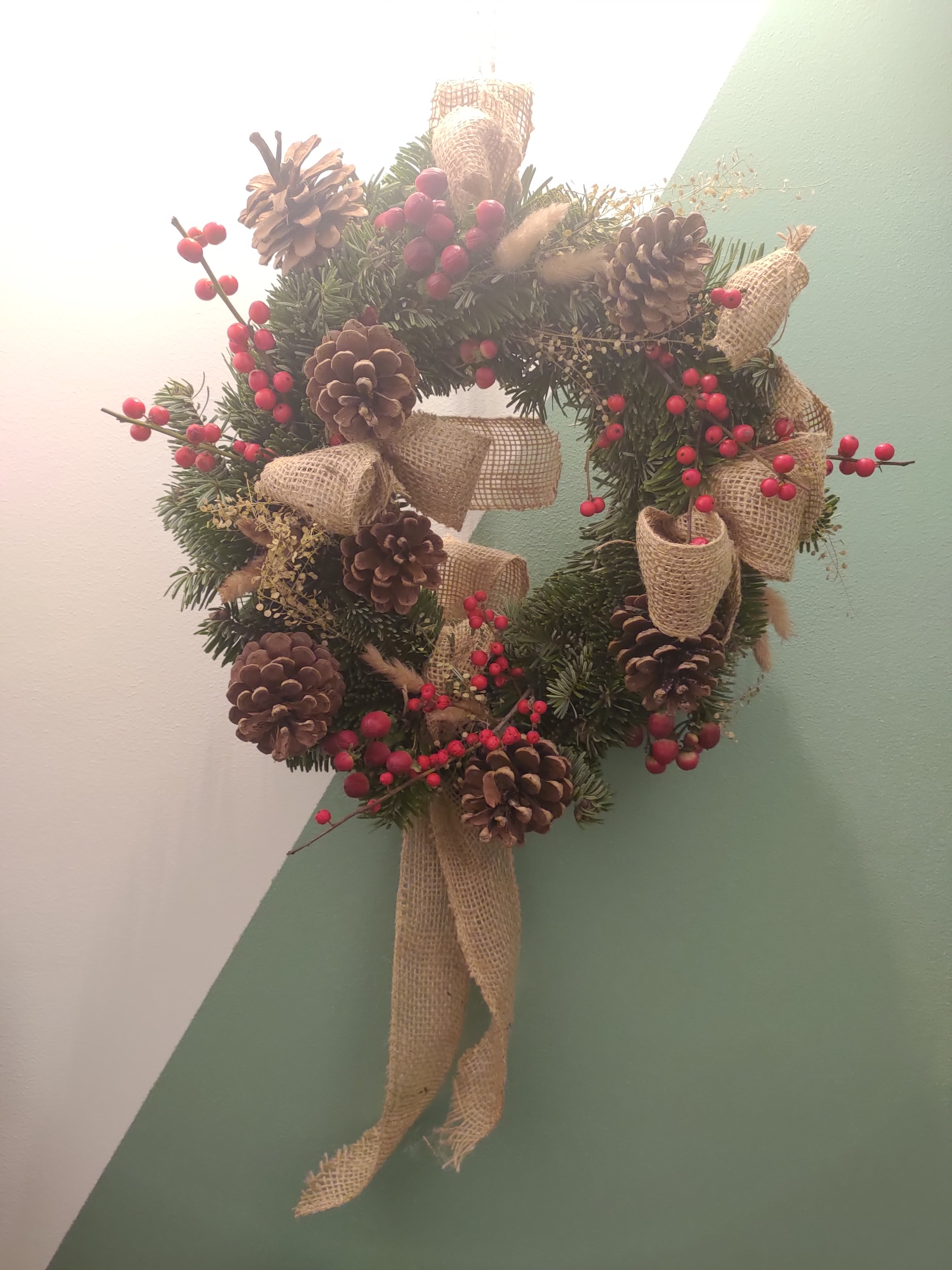 Toujours un super accueil quand on y passe et une très belle couronne pour les fêtes de Noël. Composition sur mesure, pile comme on voulait. 👌